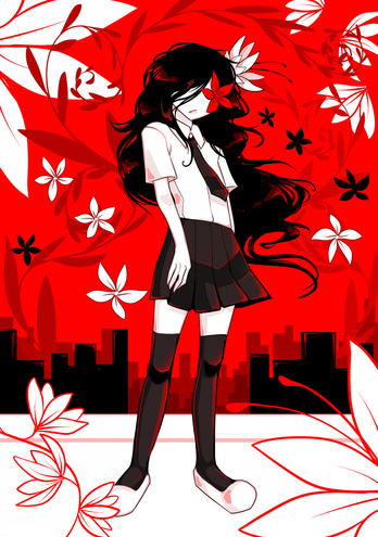 Very simple, but I love her pose and the slight shading, and the abstract roses. Would make a very good background. <3