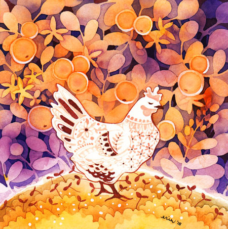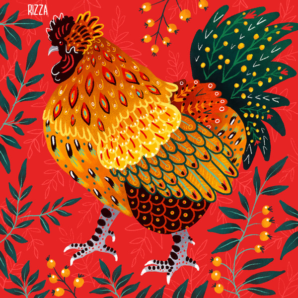 #bird #chicken #drawing #farm #floral #flowers #hen #nature #painting #spring #art