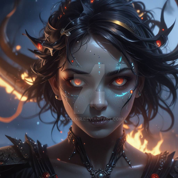 #digitalart #characterdesign #portrait #warrior #magic #fantasyart #fantasycharacter #epic #dragon #heterochromia #horns #ice #monsterhunter #fire