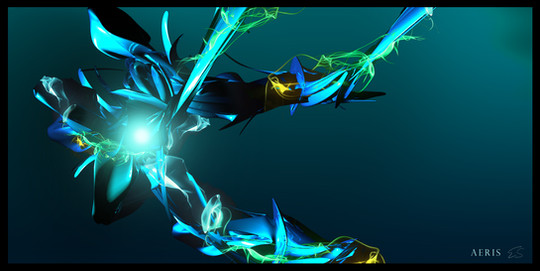 I really like it, especially the part left of the cyan-light, which is all blurry and stuff.. How did you manage that? Could you possibly ever make a tutorial, I'd love to see that ^^.