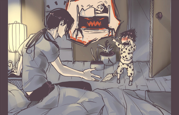 I can see why Neji looks scared, given the red food and the spoon make it look like he is bleeding from a fatal wound in the picture. Does this mean his child will grow up to kill him? Oh, boy.