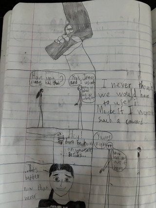 You seem to have a pretty good perspective on how angles work, but the anatomy could use some work. It looks like their bodies are flat, almost as if could peel them off of the paper.