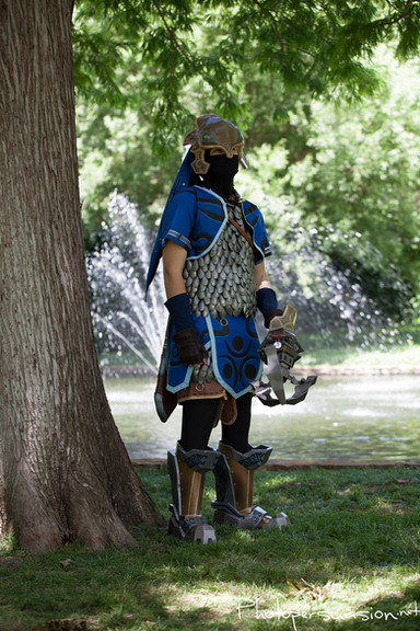 "Man, I am SO bored... Things would sure be more interesting if there were more... troubles in the world... "My Fem. Hyrule Guard cosplay! I made a point of blocking all doors that had non-elves were leaving through without a sword.