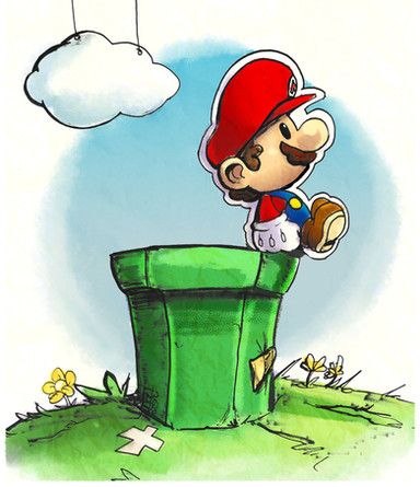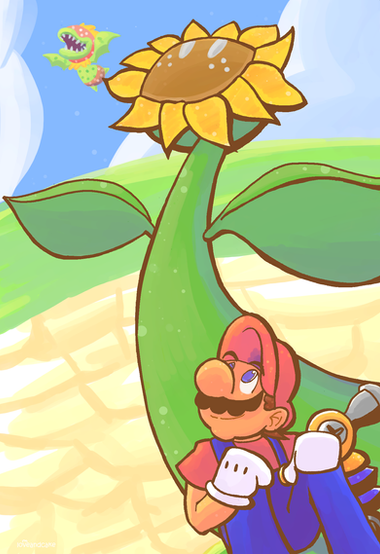Nice work there, looks like the background was made with water color and the flower and Mario with color pencils. Good proportions on Mario and neat shadings, just the color of the background doesn't get to me. But overall really nice!
