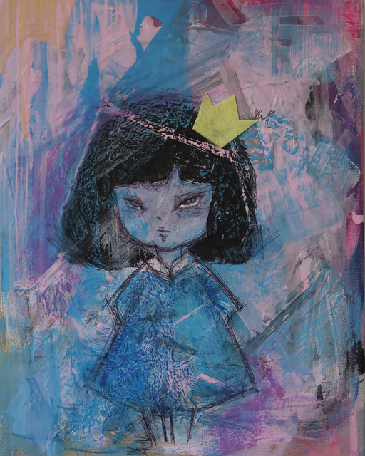 The pink background was a great choice. It makes it even warmer, but bright enough to not blend with her skin. It makes the blue eyes hypnotic in effect.