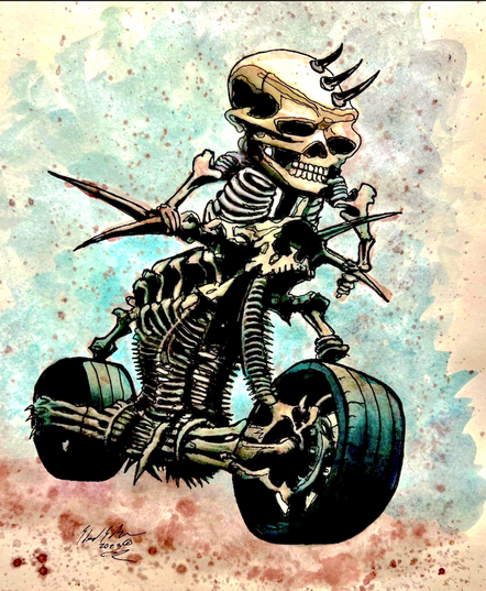I'm in search with some designs about a savage and flammed ghost rider, on an evil custom chopper....