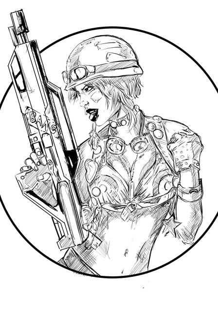 Okay, I submitted a piece that wasn't supposed to be Tankgirl and Jetgirl, but ended up being them anyway. So this IS supposed to be Tankgirl. These are only the inks for the figure, there are going to be compositional elements added when I add the colors. I don't toot my own horn (Unless I eat alot of Mexican food...) but I really like how the boots and the big gun turned out.Related content