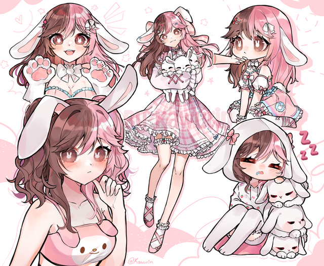 This commission was from like a year ago, it was for a boy character with pink bunny vibes! I loved it, but it's not my style anymore, even though I can still do it!Related content