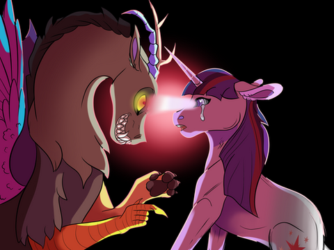 Wet with what? She wondered, putting a hoof to her face she realized it all too soon. Then, all at once, the pain came rushing back in, and the realm of shadows was filled with Princess Twilight Sparkle’s screams of anguish. Her face thrown into the realm’s endless black sky.