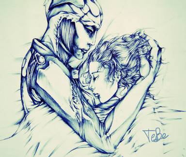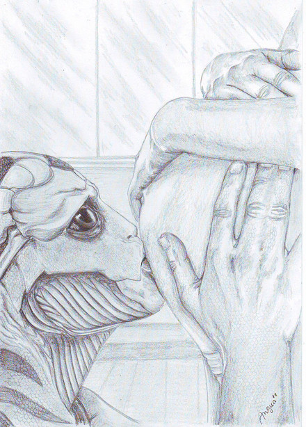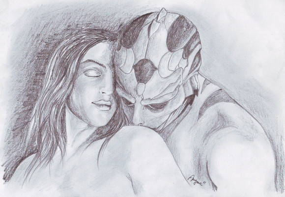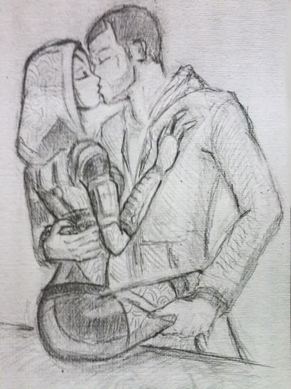 D'awwww! it's so cute! I'm currently on a Thane romance playthrough and this looks beautiful! Your pencil work is fantastic, but I'm not sure about the scanner? it seems to have rainbow noise around it, or is that just my monitor?