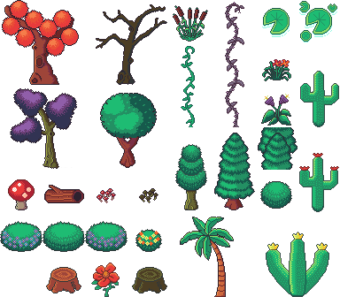The trees and plants I made for a game background. My first original sprite sheet! ^_^ Sorry that it's a JPEG... DA is being a 'tard that hates me.Related content