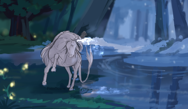 #beautiful #commission #equine #fantasy #forest #mythical #unicorn #commissionsopen #tapestrystyle #horse #stylistic #horseequine