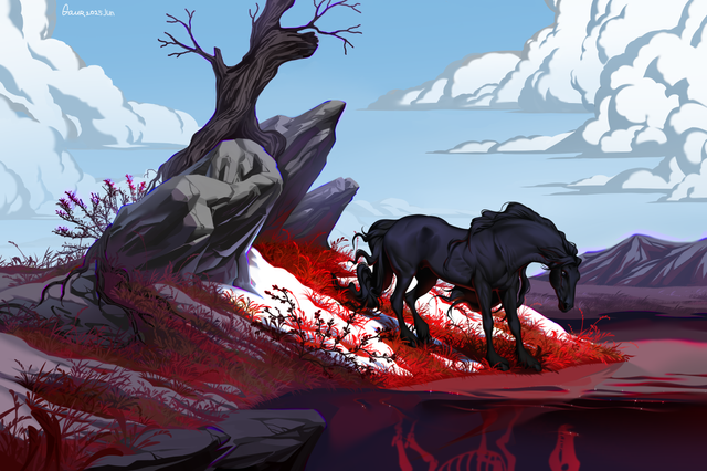 #ash #commission #fantasy #horse #sad #castlee