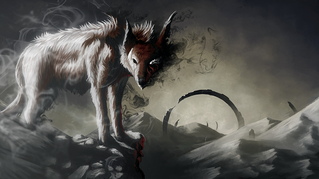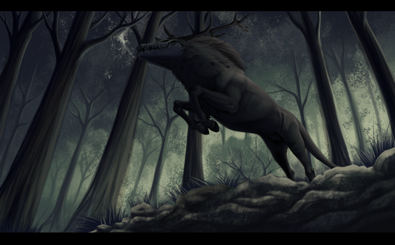 #darkness #deer #landscape #monster #trees