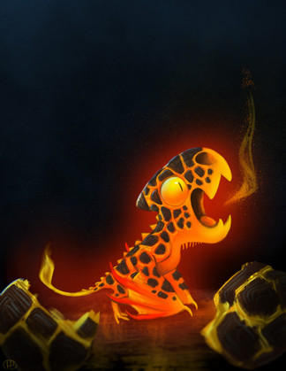 I always love the contrast between blue gradient and red gradient, and I think the lava manages that beautifully as it flows from intense red and yellow to charcoal purplish and black. I think you got the texture of the lava very well done. It looks viscous enough and ye you can also appreciate where it is cooling and turning into that darkened crust.