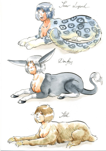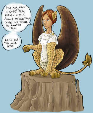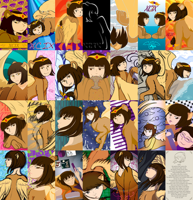 Anyway, I was thinking on this the other day, how do you describe a sphinx? and I thought it'd be funny to draw XCIX as the creatures that "make" her ... well IT was FUN