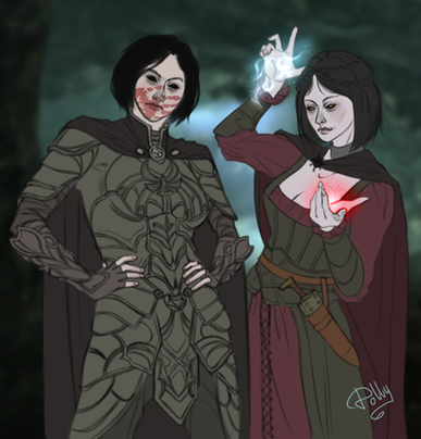 This is another game fanart I did for my sister, this time of Skyrim. It casts her character - a redguard rogue woman - and Serana, a vampire that is the most loved character of the game by pretty much the entire fandom. Honestly? I wasn't expecting it to turn out so well. It's just a sketch, but the characters look really, really similar, and the proportions and clothing are also accurate. You can see some photos from the game to compare.On tumblr: anilyan.tumblr.com/post/190574…