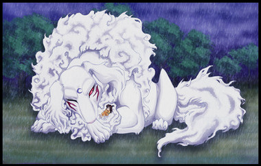 Ewww! Bath with demon dog's drool! A sweet act from Seeshomaru, but not very pleasing