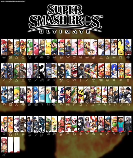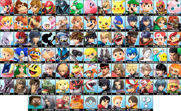 #atlus #capcom #crossover #dlc #final #konami #nintendo #perfect #roster #sega #snk #square #videogamecharacters #mojang #fightinggame #microsoft #rareware #squareenix #supersmashbrosultimate #selectscreen #bandainamco #monolithsoft #platinumgames #koeitecmo #everyoneishere