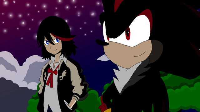 Personally, I can't help it when I compare my favorite anime, Kill la Kill, to the Sonic franchise. The more I look into things, the more similarities I see between the two, especially as is the case for Shadow the Hedgehog and Ryuko Matoi. It just feels right to me.Here, we have our two favorite red-and-black heroes lost in thought as they gaze at the Earth together aboard the Space Colony Ark...