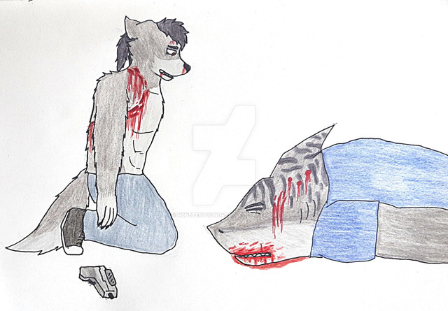 The eyes still bother me though, Try to get a more wolfish look in them . The clothes are well drawn too. All in all a very nice and expressive peice. Love it to peices.