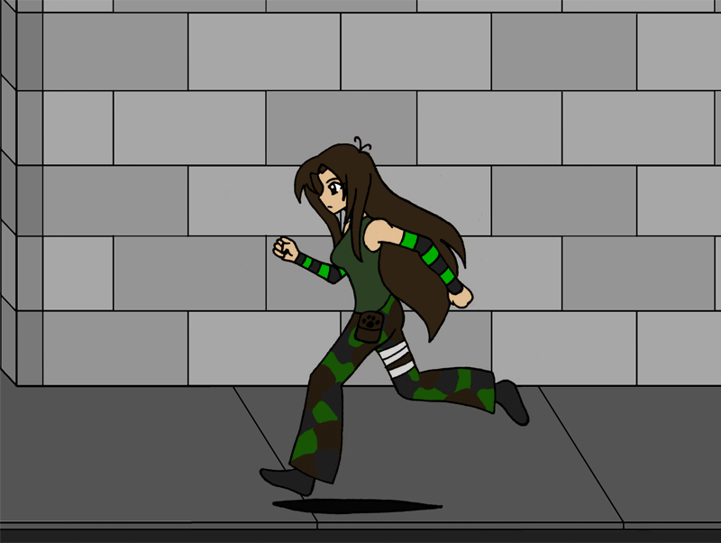 Well, took me long enough, but here's the Colour version of the run cycle I did for Kiandra. The twist is -much- too strong going one way, but ah well. This is the finished product.. well, for the frames. She -does- actually move across the screen in the proper animation, it's just easier to look at with her in the one spot with this.I've no idea how long it took, but bleah x.X Done now.