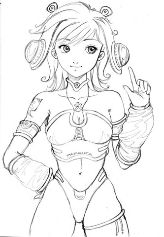 I'll bet she would float in the pool just fine. lol Quite a buoyant. The line work is good..i like the expression on her face too. Like to see it colored.