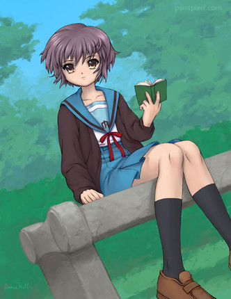 Yuki Nagato alone on the bench.This is the first panel of my Beauty From Space comic . I liked it so much, so I posted it by itself.