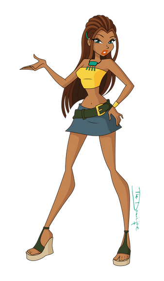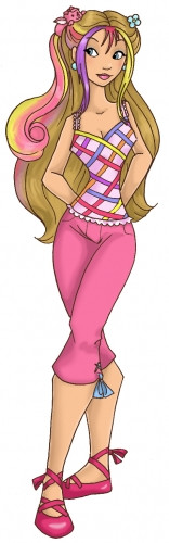 The only thing I don't like about this is the skirt, but that's just me. I love how you've straightened her hair and given her amodern look. The top and the gloves are perfect for this pose and character!