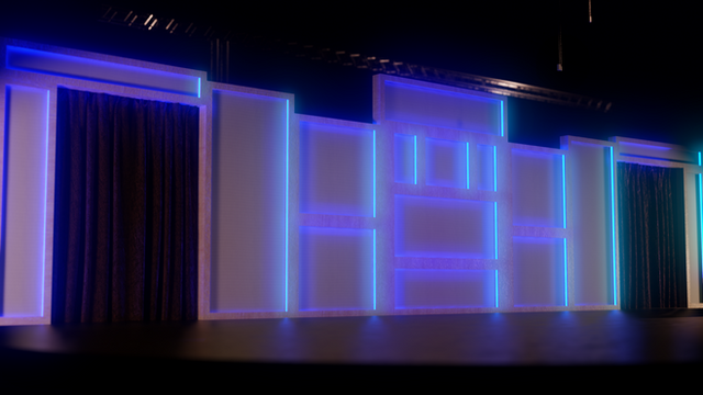 One of todays projects which i have took all the branding off of. Dual screen with an LED curtain backdrop and a snazzy little round Lectern.Created in Maya, Edited in Photoshop