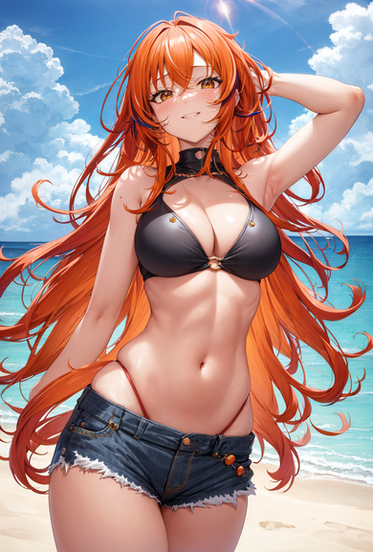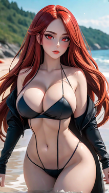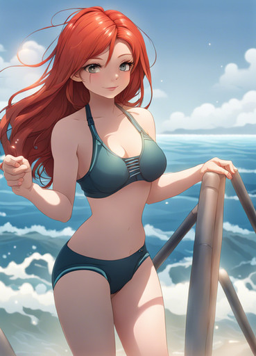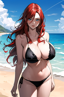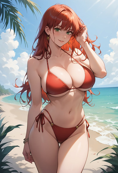 Redhead woman hanging out on the beach.If you like my AI artwork, and want to see more exclusive spicy content, you can make a request here: