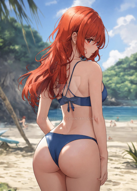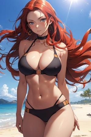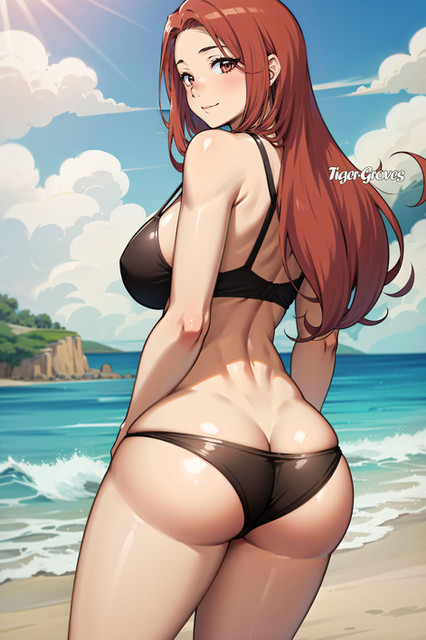 Redhead woman hanging out on the beach.If you like my AI artwork, and want to see more exclusive spicy content, you can make a request here: