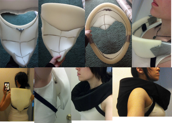 -The less cheap way- this way will last a bit longer and work a bit better, but is more expensive than duct tape (still cheaper than a dress form, though). Buy one of those tight-fitting sports shirts, sew patches over the openings, and stuff. Make sure that the measurements when stuffed match your measurements! This may require fitting the shirt more with darts or extra seams, and stuffing it quite a lot.