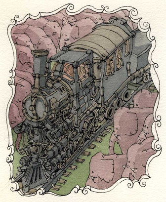 The train looks so lumbering! Like it's some old thing that grumpily comes to life every morning. I love this piece.