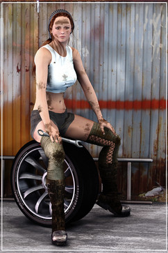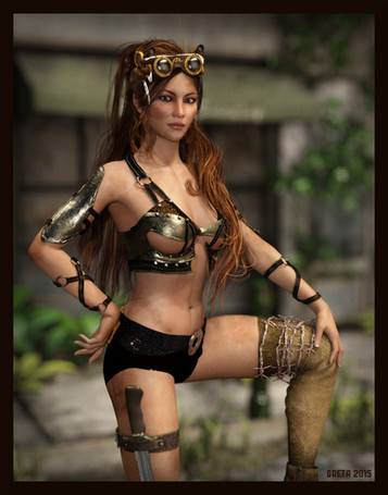 Wow she looks tough and sexy. I like the textures on her clothes.