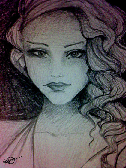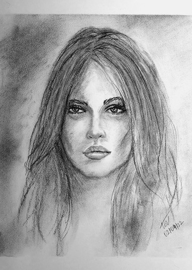 a few days back. I was just going through some photos on Google and I came across this one, Her intriguing eyes held my attention for a while and I couldn't resist but to sketch her .I just used charcoal and shading pencils to sketch her but what I just loved about her face was a Sparkle in her eyes l.✨️