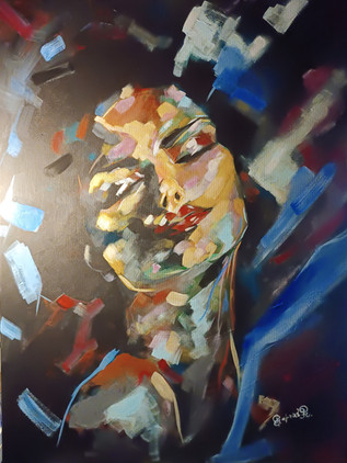 I started with the thought in mind tp splurge the canvas with a riot of colorsI didn't want to restrict myself to any boundaries,wanted to create solitude on the face 🙂😊❤️💕🌄