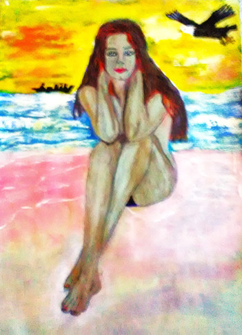 my new canvas on sunset where I've tried to bring my muse to absorb the beauty of a tangerine sun at Dusk on a cliffused acrylics for my art 💕🌄💜