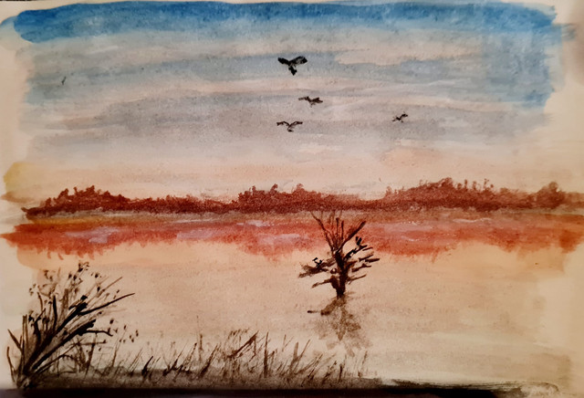 Watercolour painting based on tutorial by K. Sterkhov.I´m not satisfied with this. but it was a good exercise. I´m not especially good at landscapes.