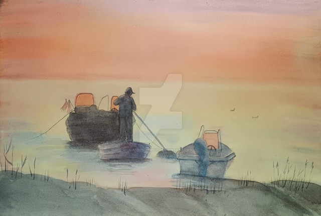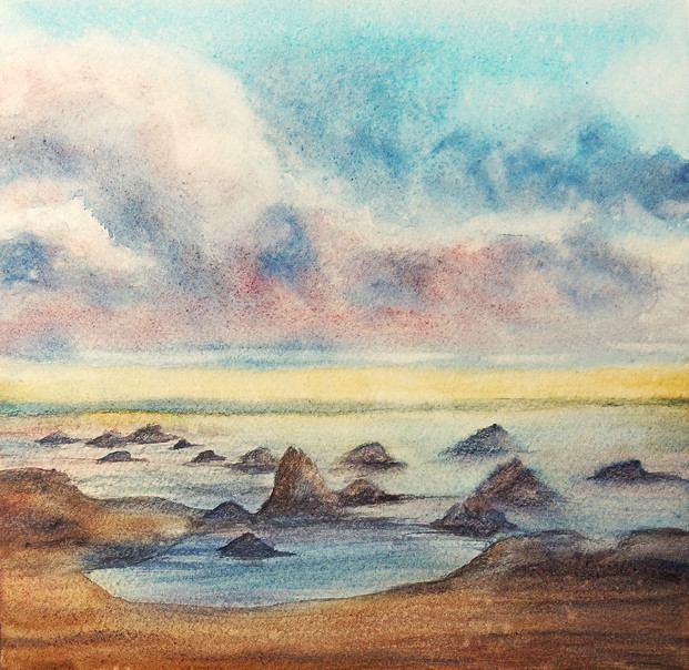 #traditionalart #landscapescenery #sunset #watercolourpainting #seascapepainting