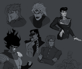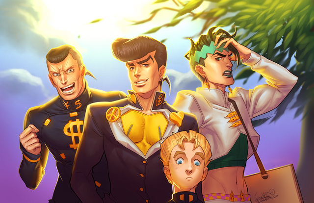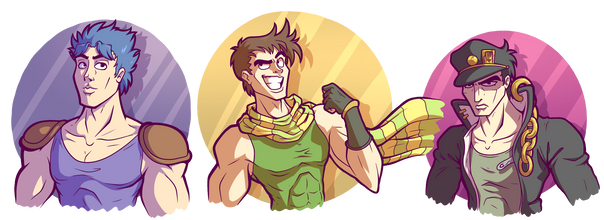 I finally finished this little silly idea. Originally it was supposed to be a quick simple drawing, but apparentlyI can’t make simple things most of the timeKakyoin on the second picture ended up looking like he’s thinking “look at these idiots, I'm so happy to have them”