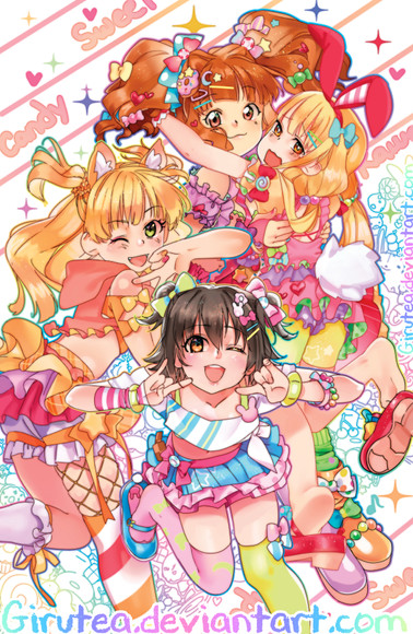 It is Amu, Rima and Yaya from Shugo Chara; I really wanted to draw them in the outfits Buono! wore in the Rottara Rottara pop video ♥