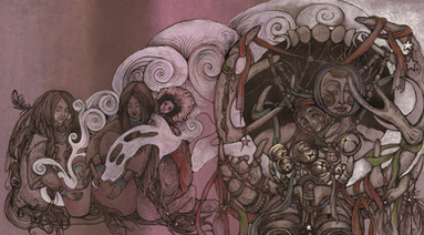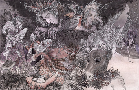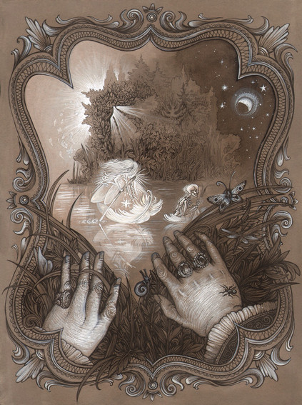 I love the little creatures (faeries?) and all the different textures. Very well done!