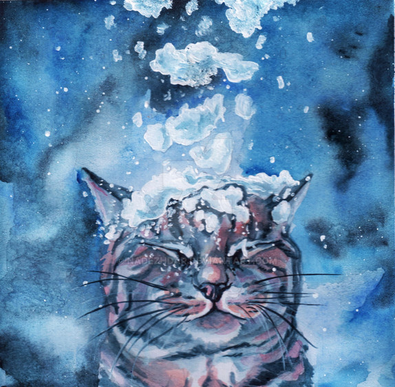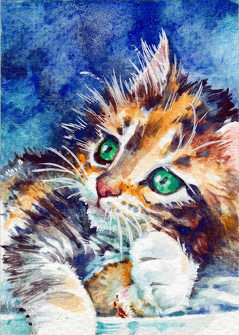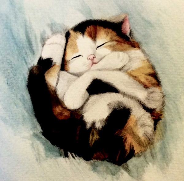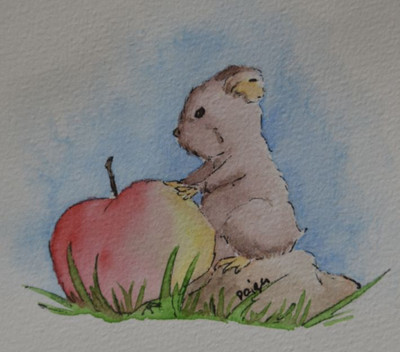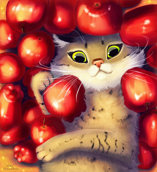 Ha! This is so cute. The cat can't handle all the apples. Good capture of the fruit and the cat in watercolor.Β Β