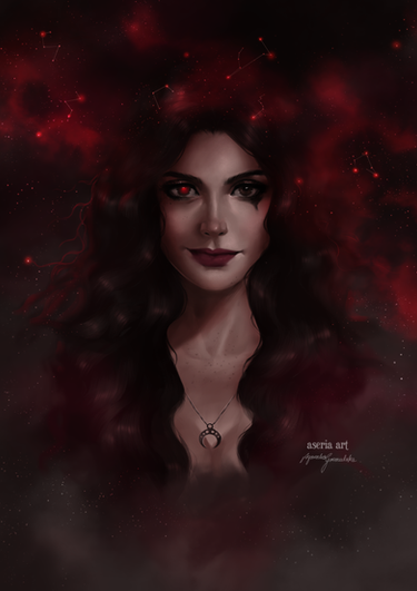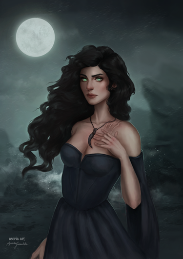 This is so beautiful! I love her necklace. And the lightning behind her is perfect, she looks so epic!