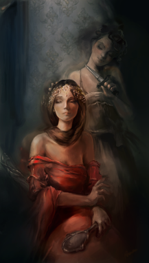 Beautiful and a little haunting. I really love how much detail you put into this. The hands are wonderful and very expressive. The lighting is an interesting choice, as well.