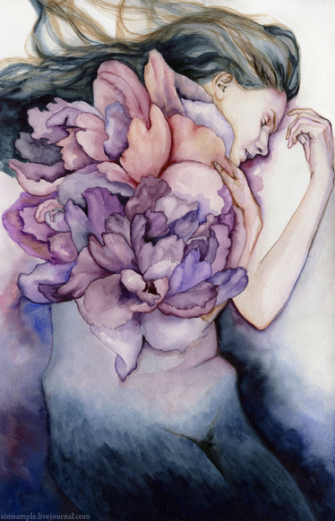 Love the bleeding effect on the hair and the veining on the hands. Also, the icon of this image makes it look like the leaves are a wooden bar, making it look like the girl is a marionette that the hands are controlling.