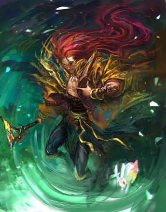 I like his face. The eyes looks cool. And his colourful hair are just perfect ^ ^ Only this blade looks a little... bend? But, oh well, doesn't really matter
