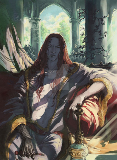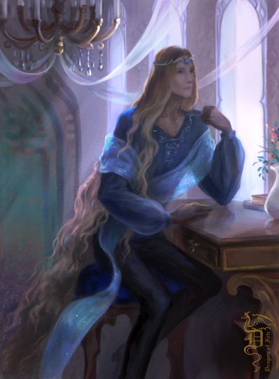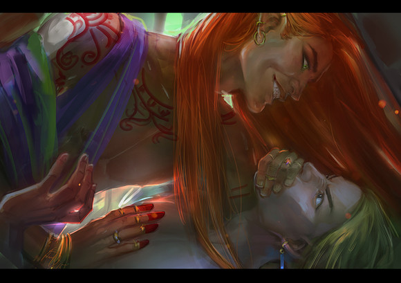 Yet, beside her ability to excite you all with Val's unquestionable beauty, she made me understand even better why I chose her to paint one of my favorite (and most beloved) original characters. She plucked him out of a few billion possible red-headed androgenous males and brought him alive and safe to me. In the fantasy world I've built for him and several others, he now exists happily with his partner (also male) and their children. One of the happiest couples I have ever encountered.