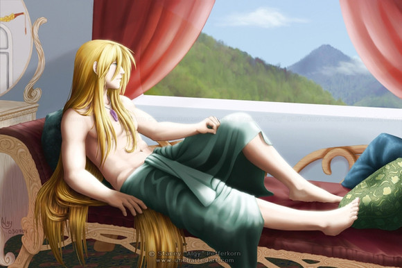 Wow! He is so gorgeous, what a beauty! Delightful body and such a pretty face. I love his long, red, beautiful hair and seductive look on his perfect face.